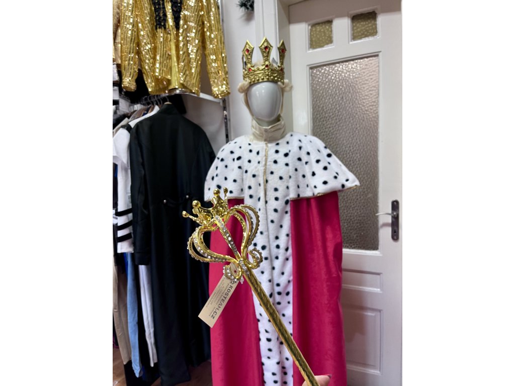 Kostým obsahuje: Červený plášť s hermelínem, halena, pumpky, koruna, žezlo