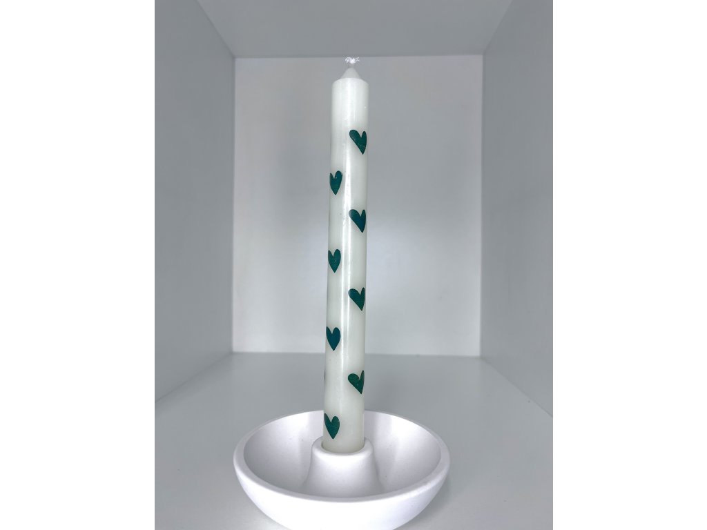 Svíčka s tmavě zelenými srdíčky, Mistička kolem svíčky vhodná na dozdobení,